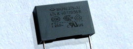 X2类,金属化聚丙烯膜,耐冲击电压和电流能力强,自愈性能优异,塑料外壳、环氧树脂灌封,优异的防潮及阻燃特性,安规认证产品。适用于苛刻条件下(高温高湿)与电源串联的电容降压电路,如电表、LED模块等产品。电压:305Vac 50/60Hz 容量:0.1~4.7uF 耐电压:1800Vdc(2S) 极壳电压:2120Vac(60S) PCB安装